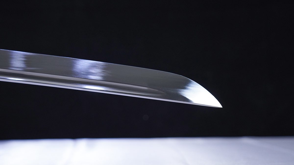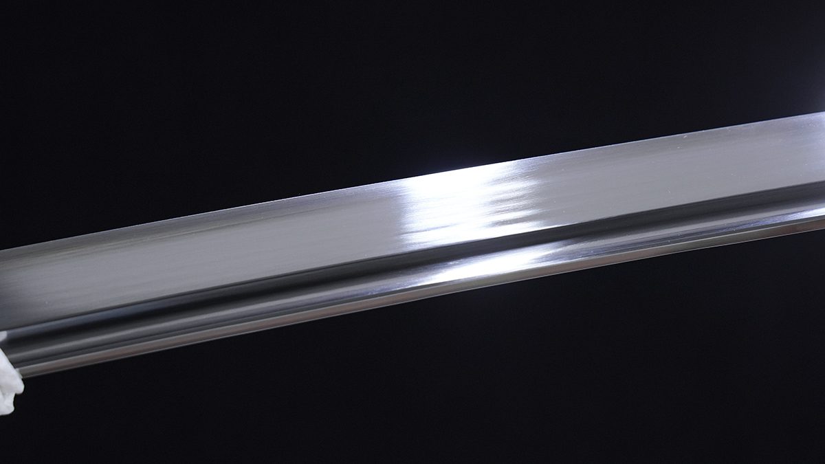 Note that the width of this katana's blade is adjusted—typically varying within a range—to increase the motohaba from the standard 3.2 cm to up to 3.5 cm, and the sakihaba from 2.4 cm to around 2.6 cm. As a result, there is an overall increase in the katana's weight.