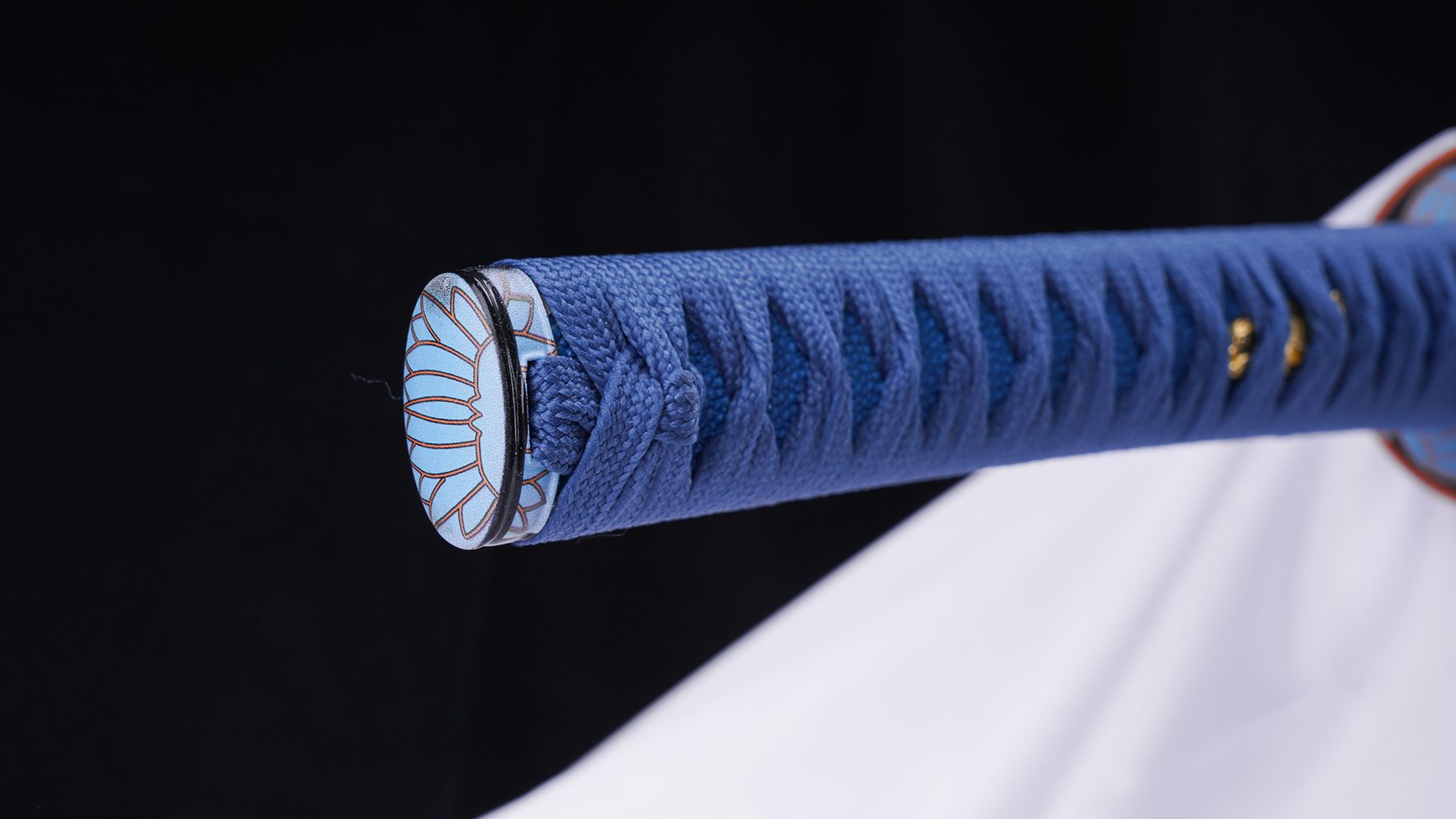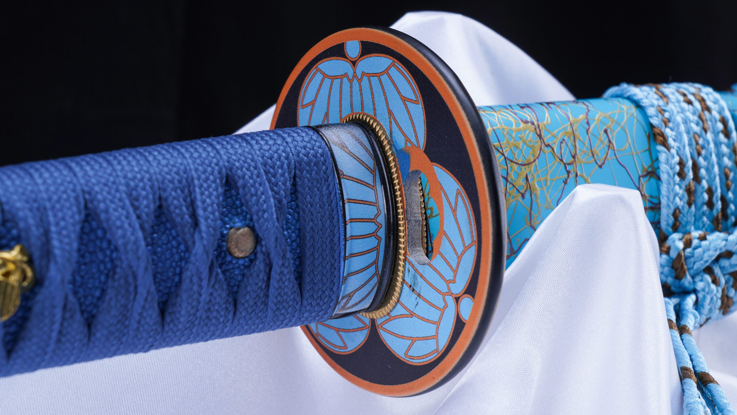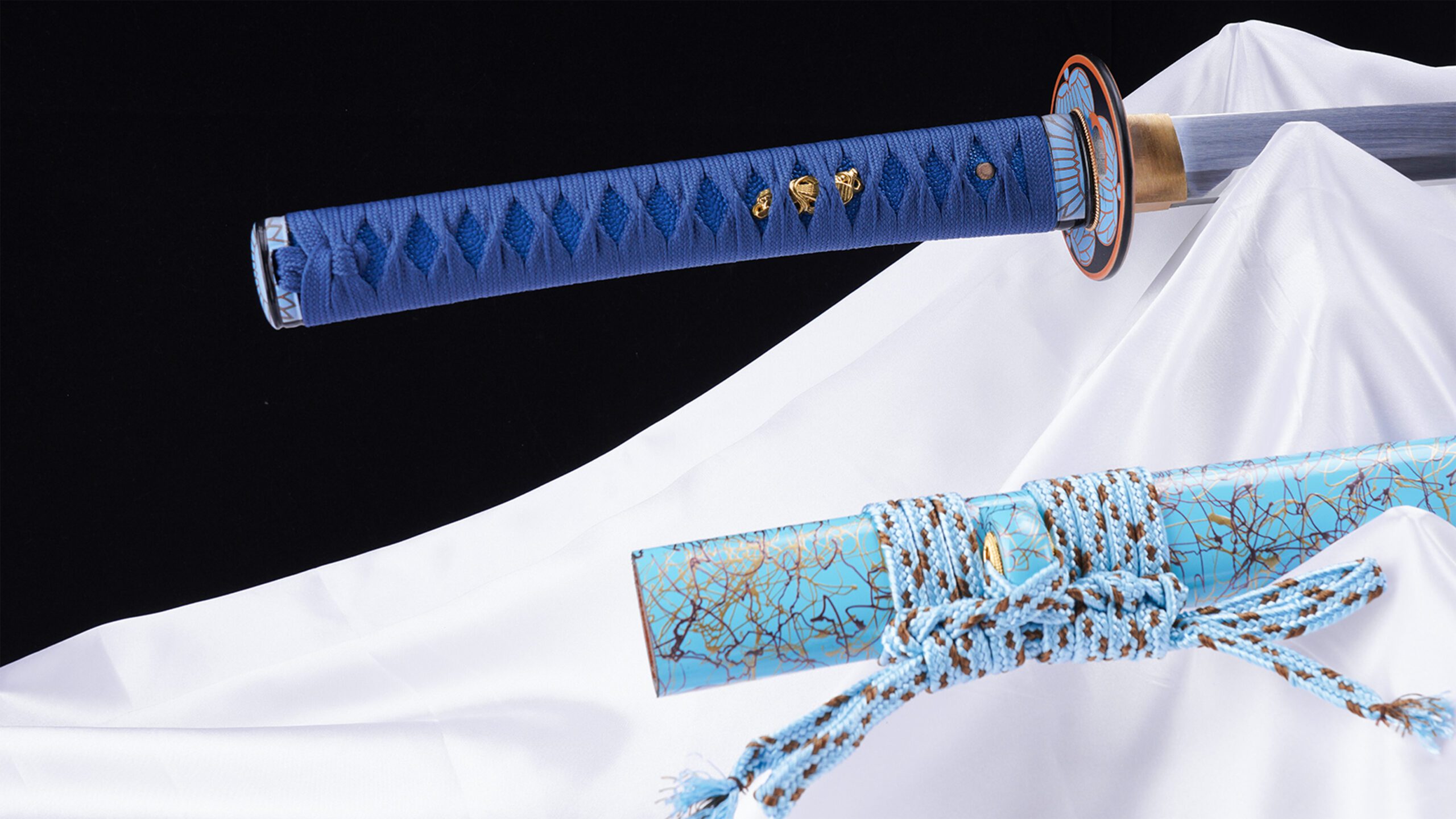 Anime Style Blue Leaf Motif Battle Ready Katana Sword