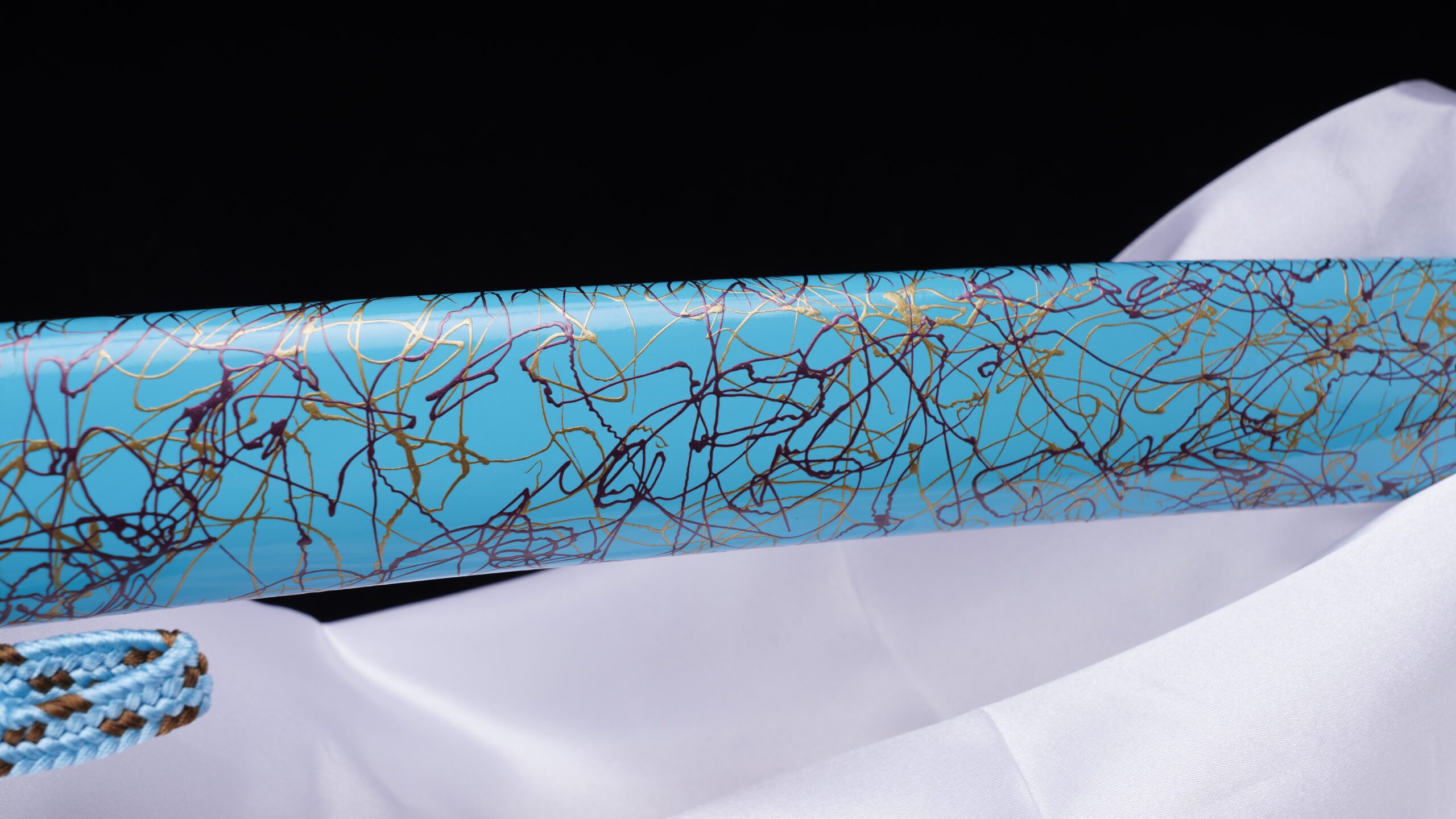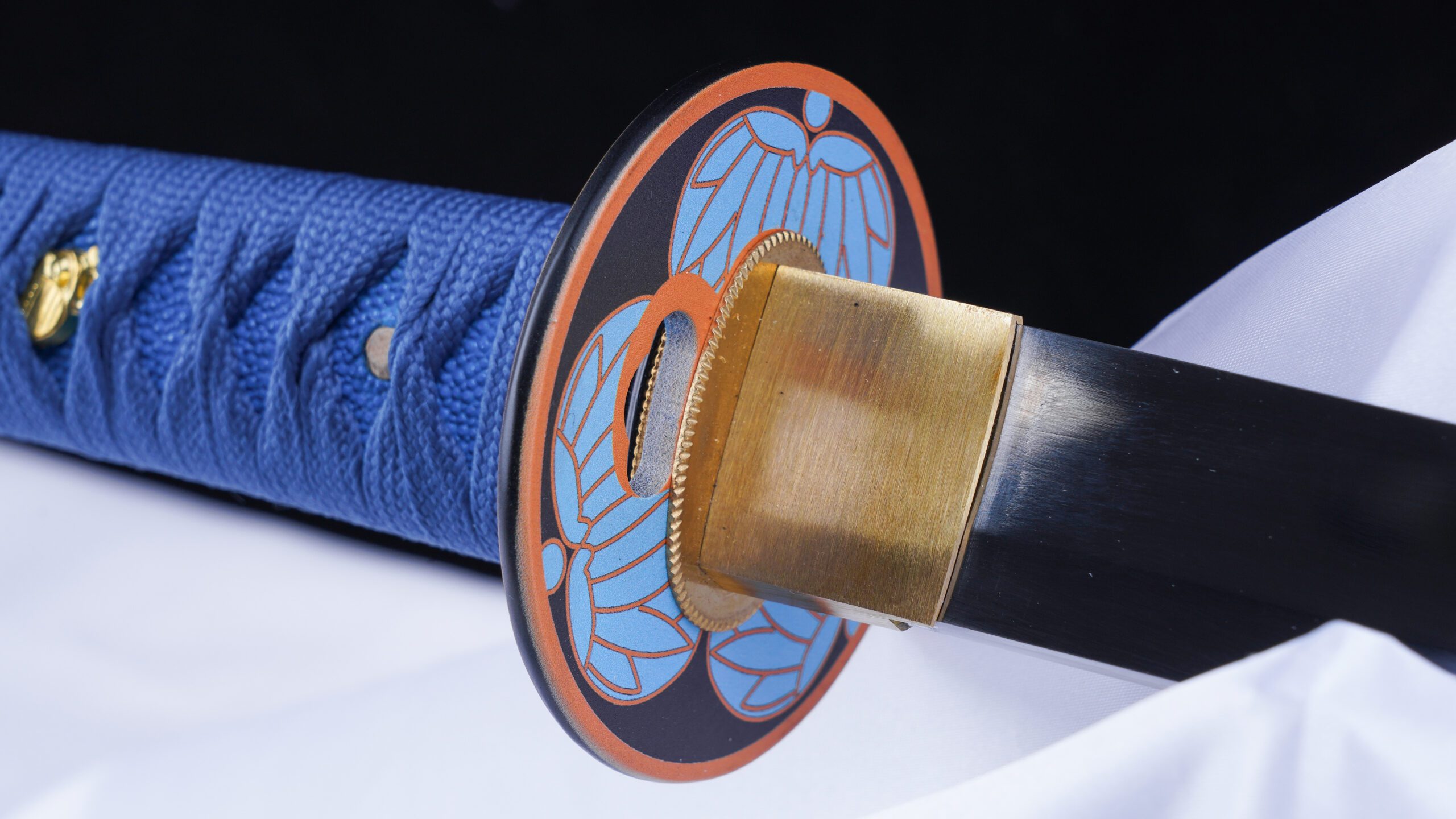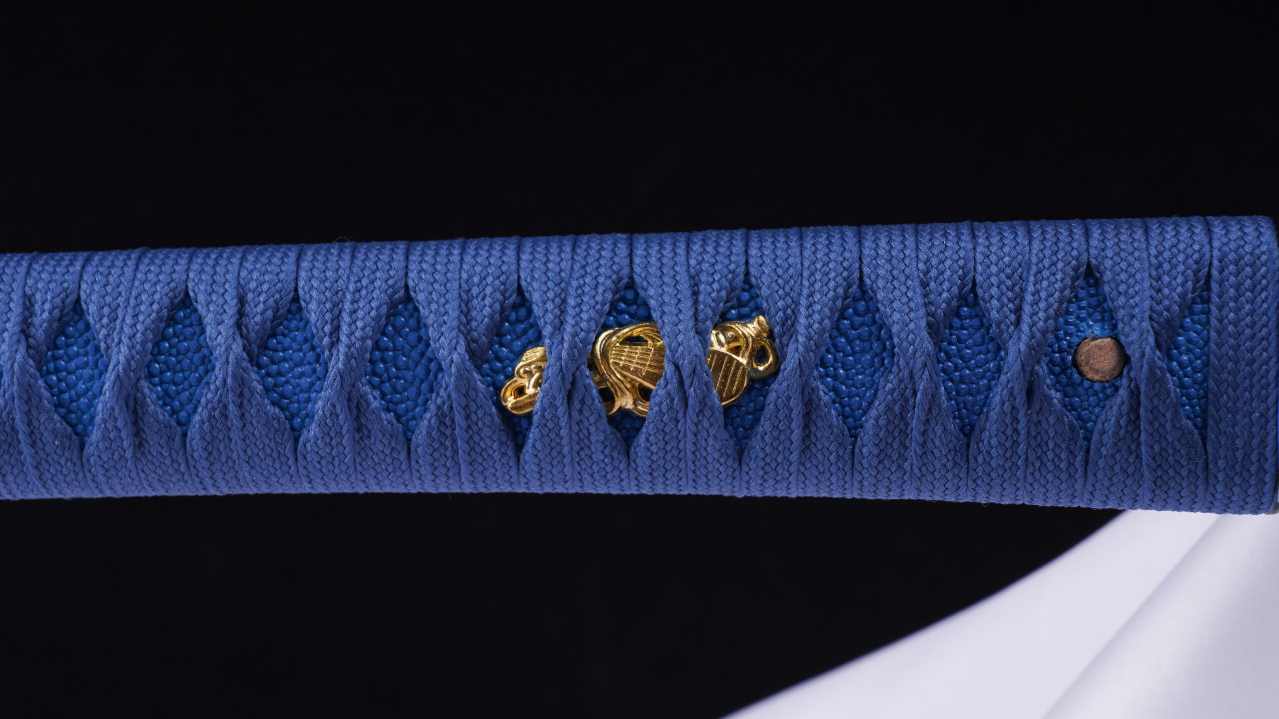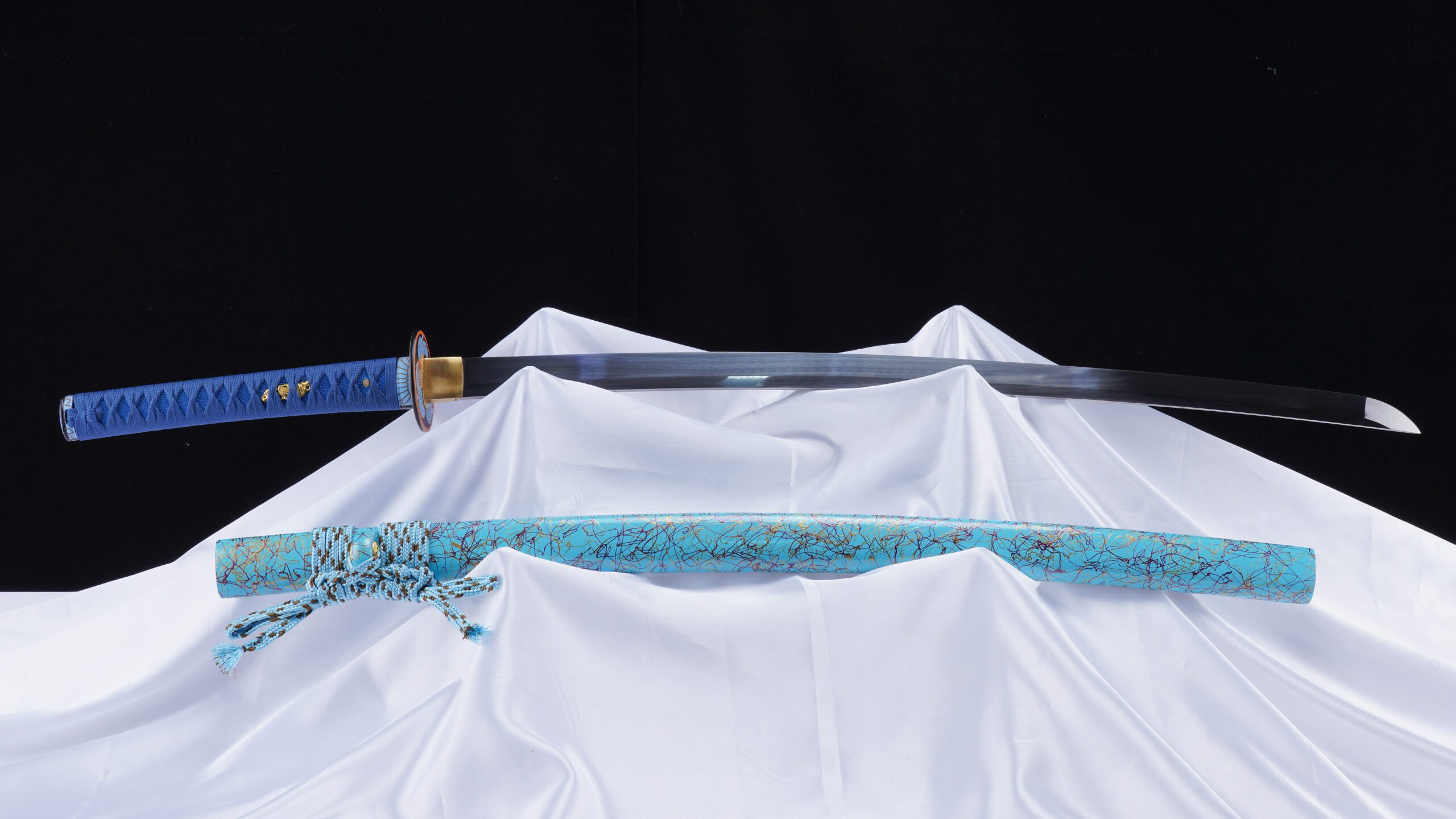 Anime Style Blue Leaf Motif Battle Ready Katana Sword