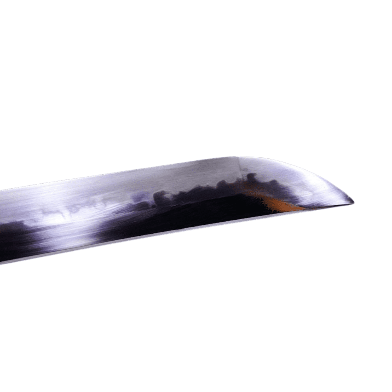 Crucible steel is a smelted steel that produces a more distinctive hamon compared to 1095. With around 0.6% carbon, it strikes a balance—providing good toughness after clay tempering while maintaining moderate edge hardness. This blade comes with a premium sashikomi polish and represents the finest steel in this collection, closely resembling traditional tamahagane.