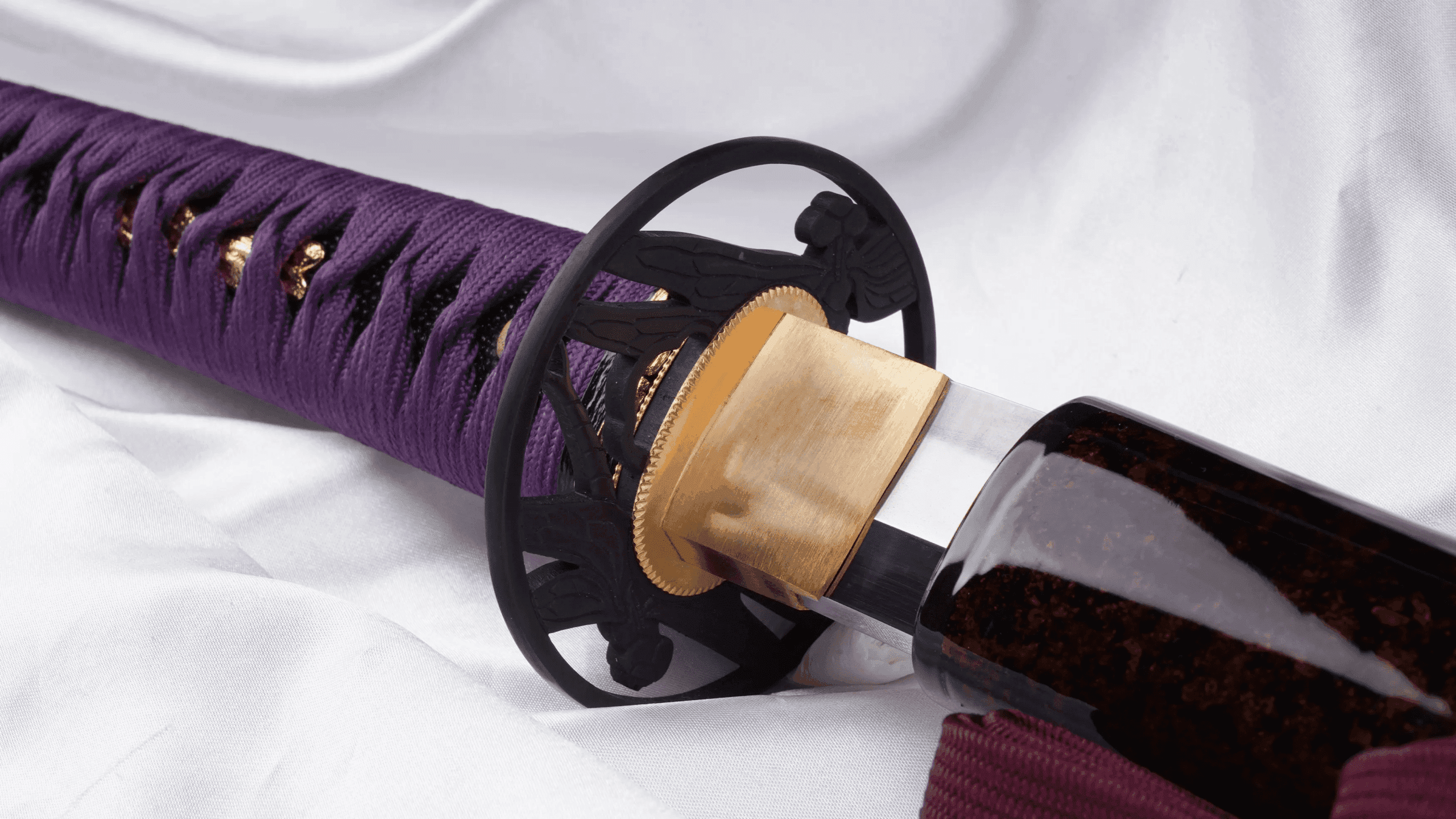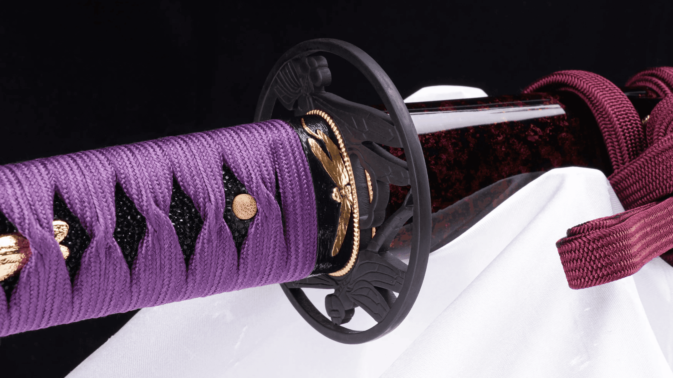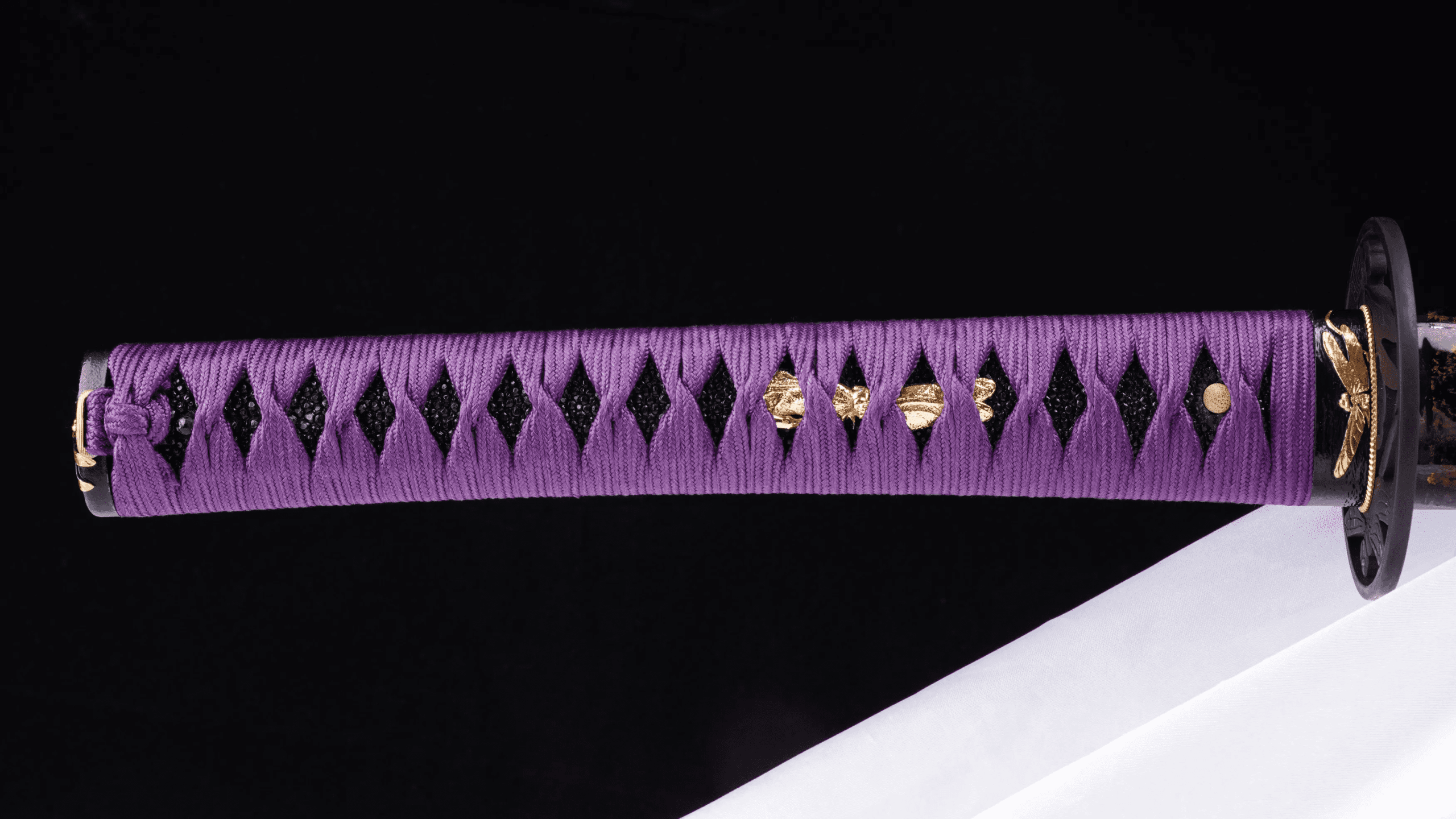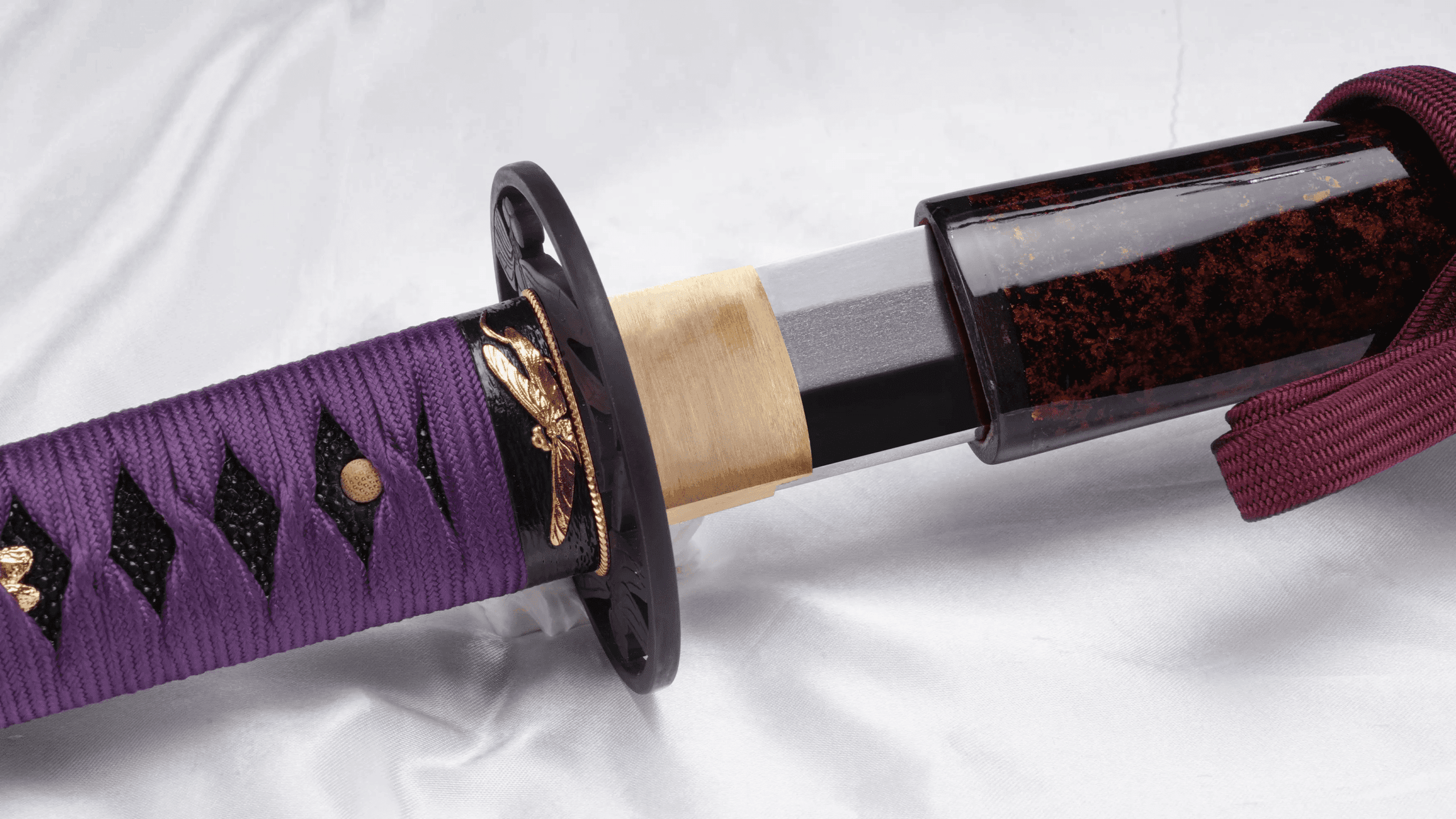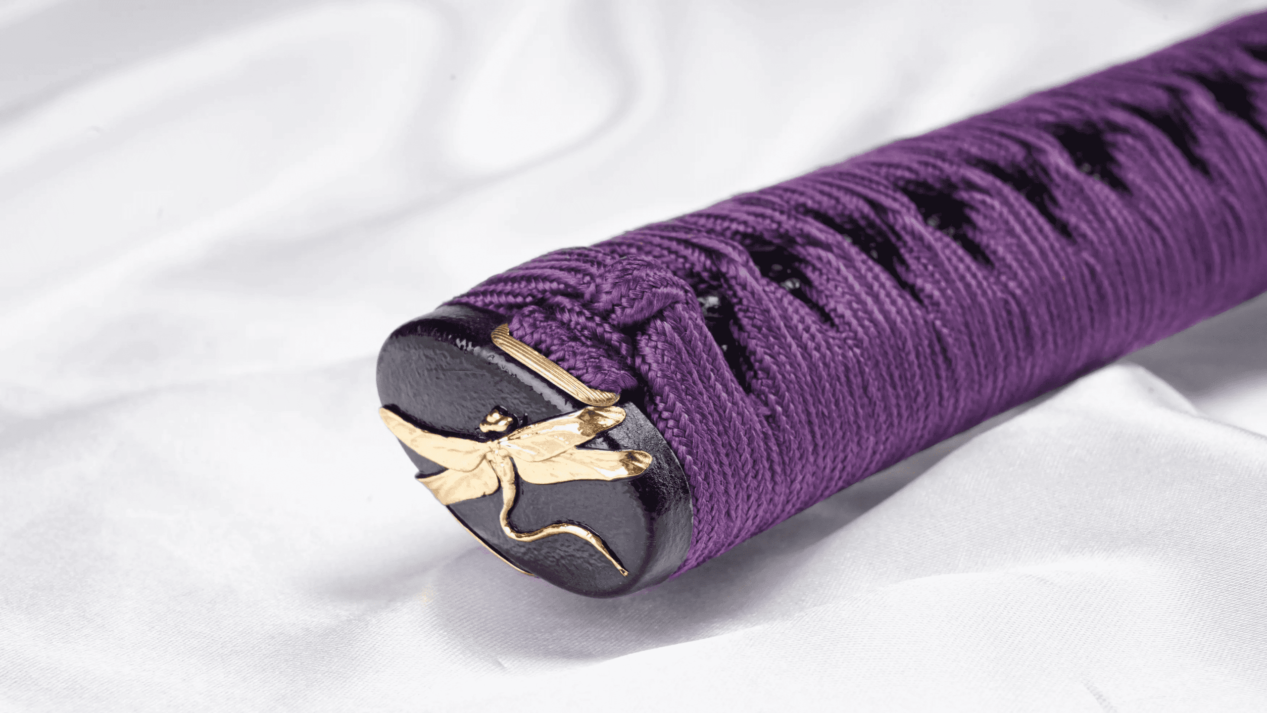 Dragonflies in feudal Japan represented courage, fidelity, strength, and were seen as protectors of children. That is why over time they became the symbol of the samurai, embodying what these legendary warriors represented to the Japanese community. This Japanese katana is decorated with a dragonfly motif and a purple color exclusive to the highest ranking officials, indicating nobility and status.