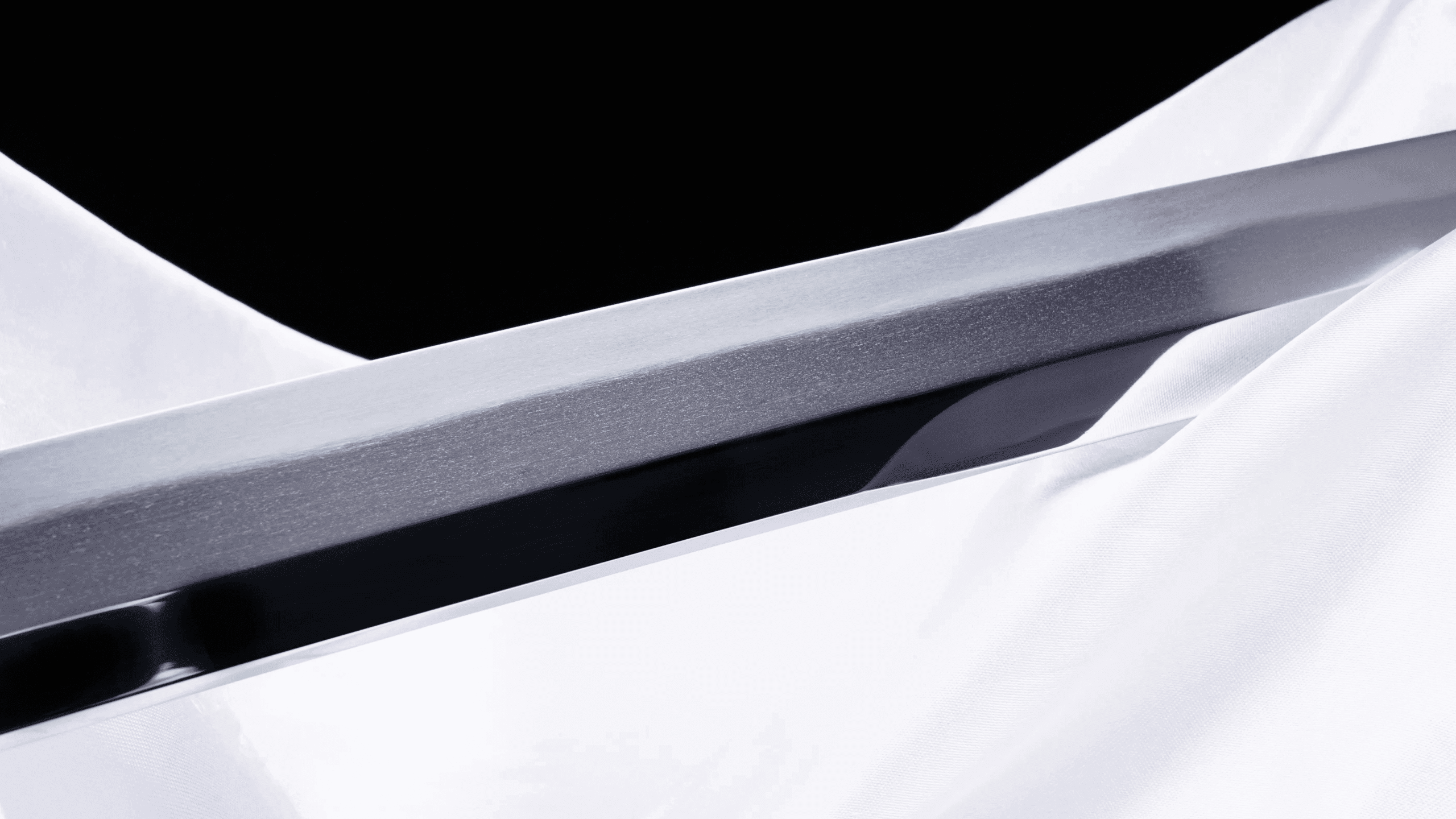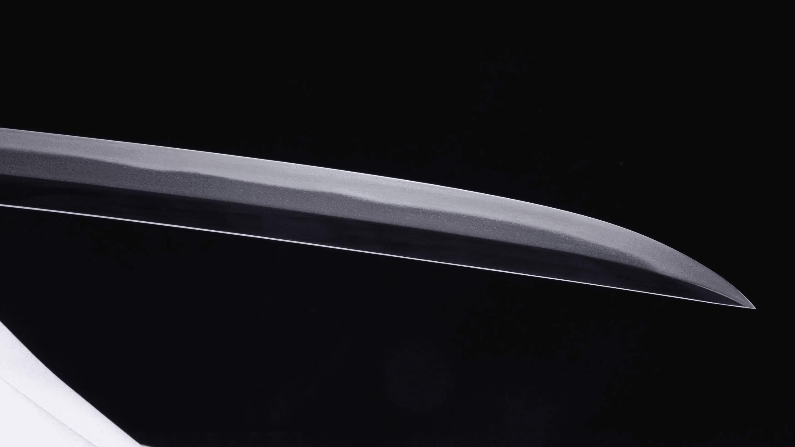 It has been traditionally and authentically clay-tempered, with a mixture applied to the edge during the forging process to strengthen it. This method was how samurai swords were hardened for battle, producing a real hamon pattern dancing across the blade's edge. It features a unique Kanmuriotoshi-Zukuri profile, designed for wide sweeping cuts and able to penetrate targets such as tatami mats and bamboo with ease.