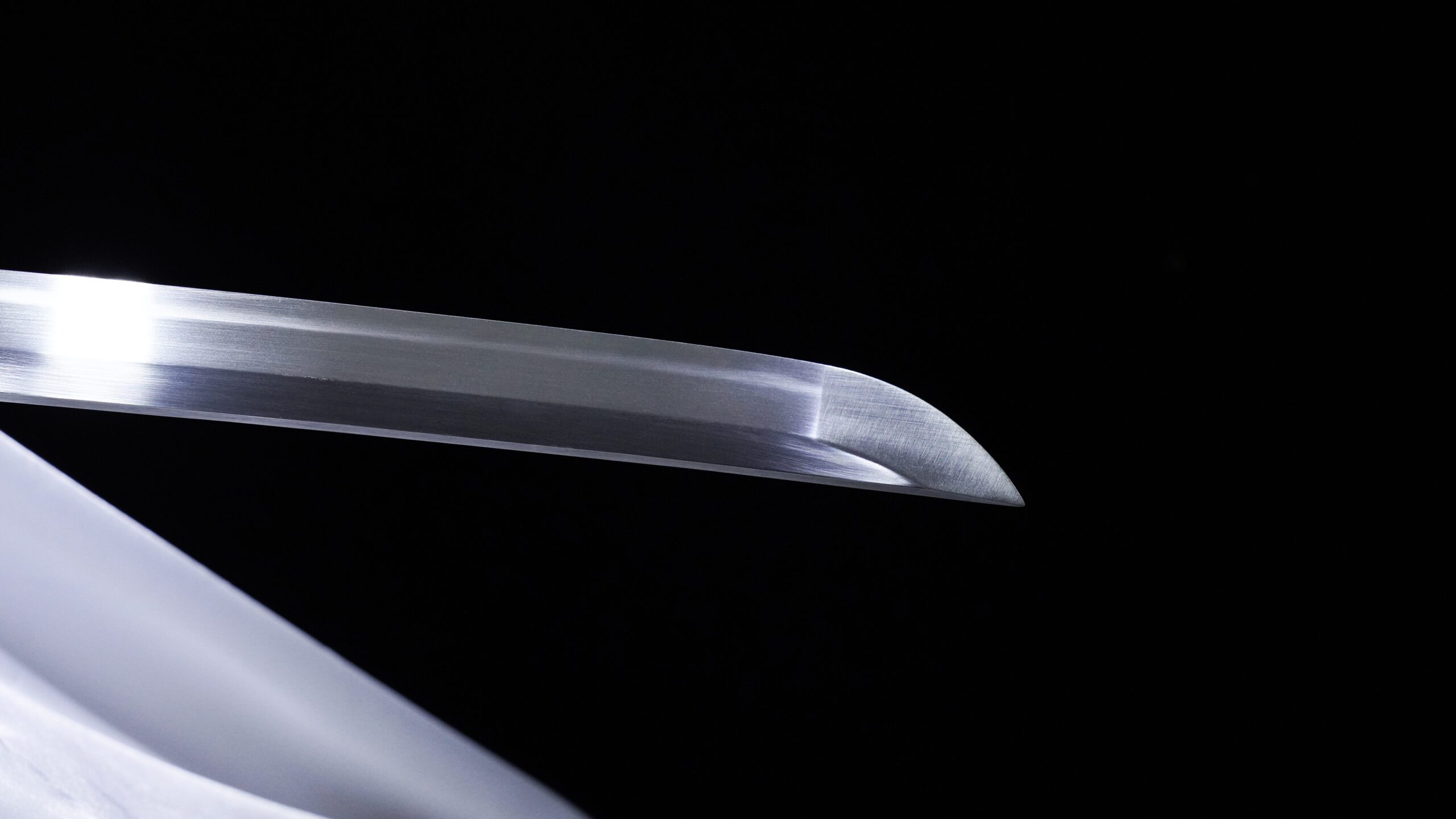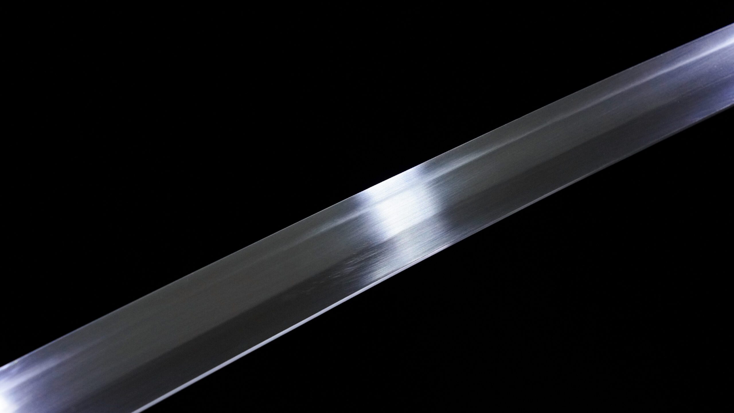 Its shinogi zukuri (ridge line runs along the blade’s length on both sides) 1095 carbon steel blade has undergone the differential hardening process, revealing a simple yet stunning suguha (straight) hamon. This construction yields an extremely sharp and keen edge that is highly desirable, even for experienced cutting practitioners.