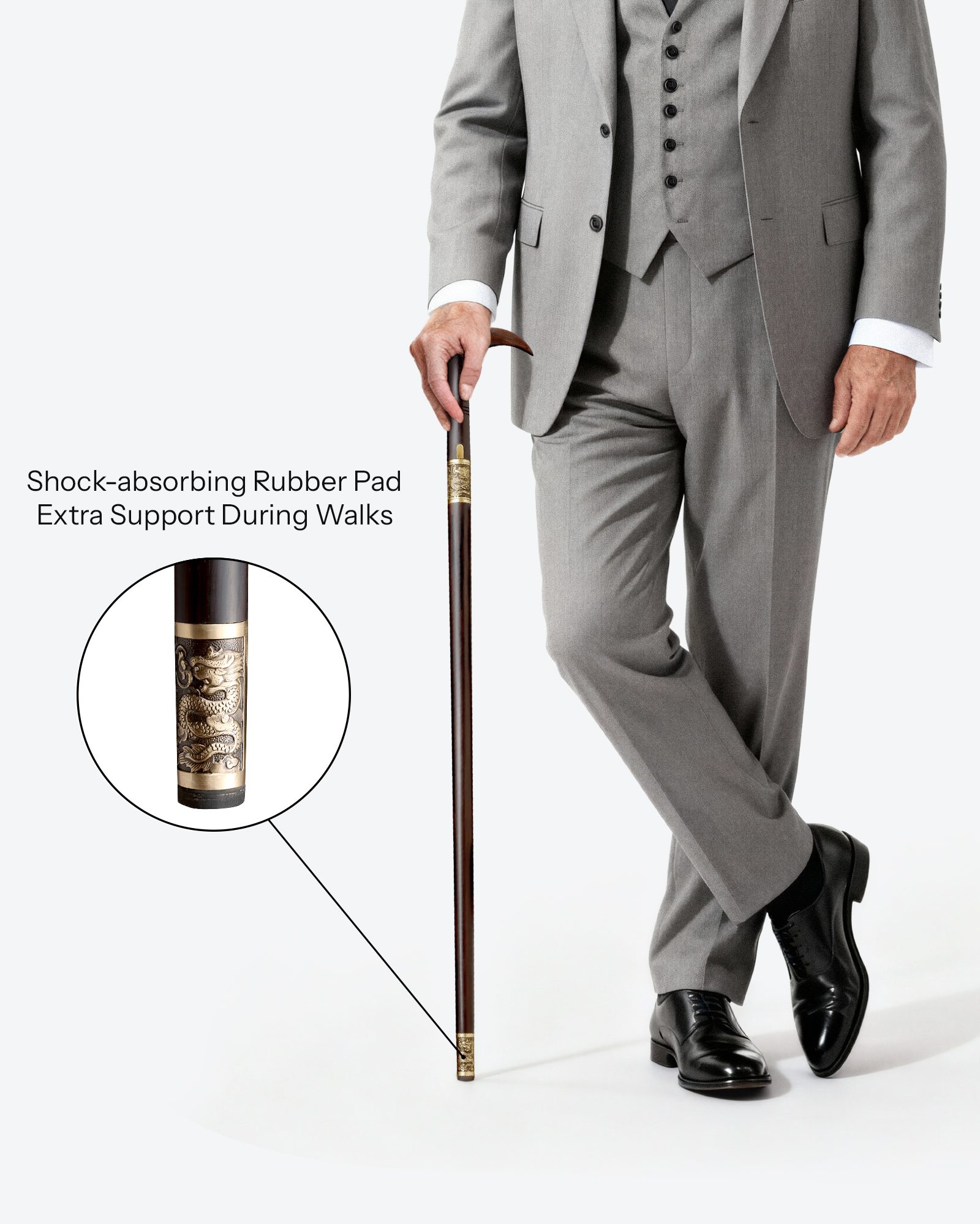 At the base, a shock-absorbing rubber pad offers added stability and comfort while walking.