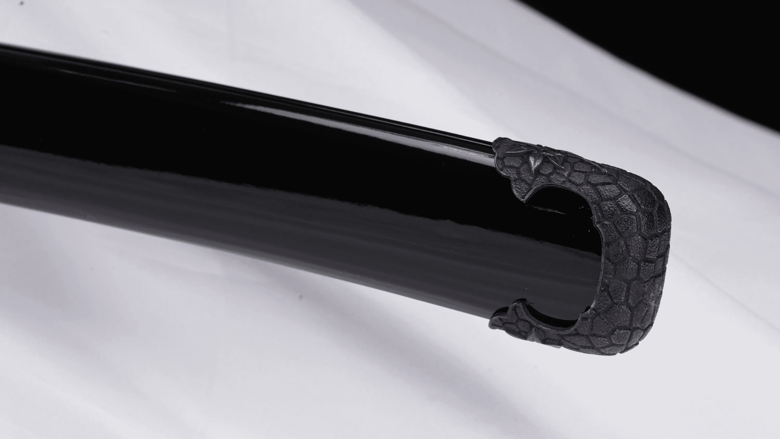 The wooden scabbard is engraved with the Kill Bill demon and its fittings are crafted from horn, keeping up with the authentic style of a traditional samurai katana.