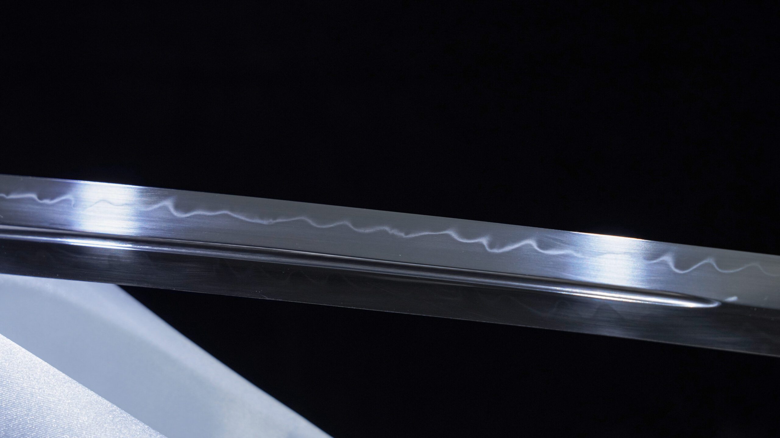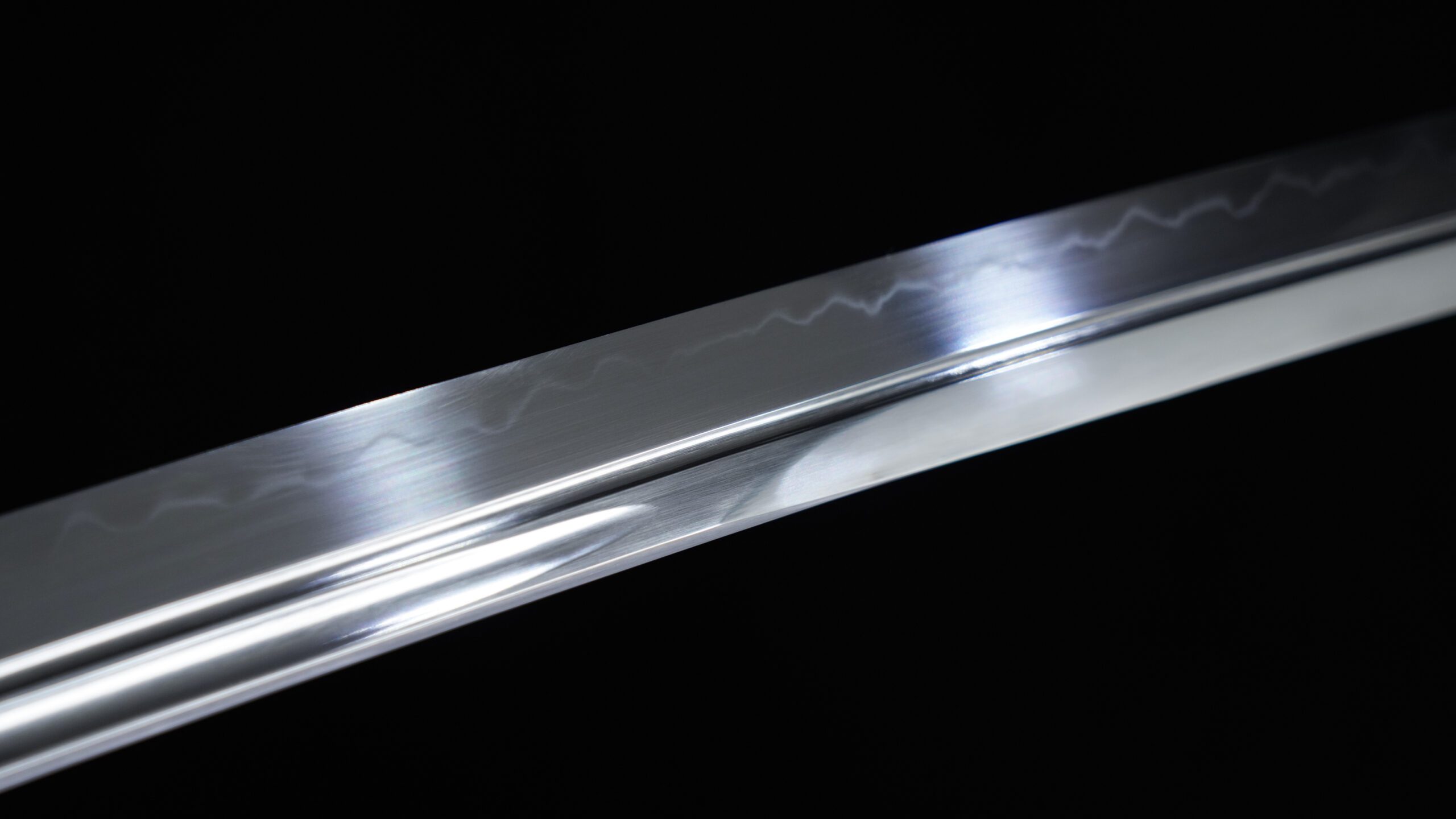 The _kissaki moroha zukuri_ (double-edged tip) blade forged from 1095 carbon steel offers an exceptionally sharp blade with an enhanced piercing ability. Due to the differential hardening process, the blade has a vivid _gunome_ (wave-like) _hamon _that accentuates the aesthetics of the sword. Meanwhile, the double _bohi_ (fullers) decreases the sword’s overall weight, improves its point of balance, and heightens the clarity of its _tachikaze_ (cutting sound).