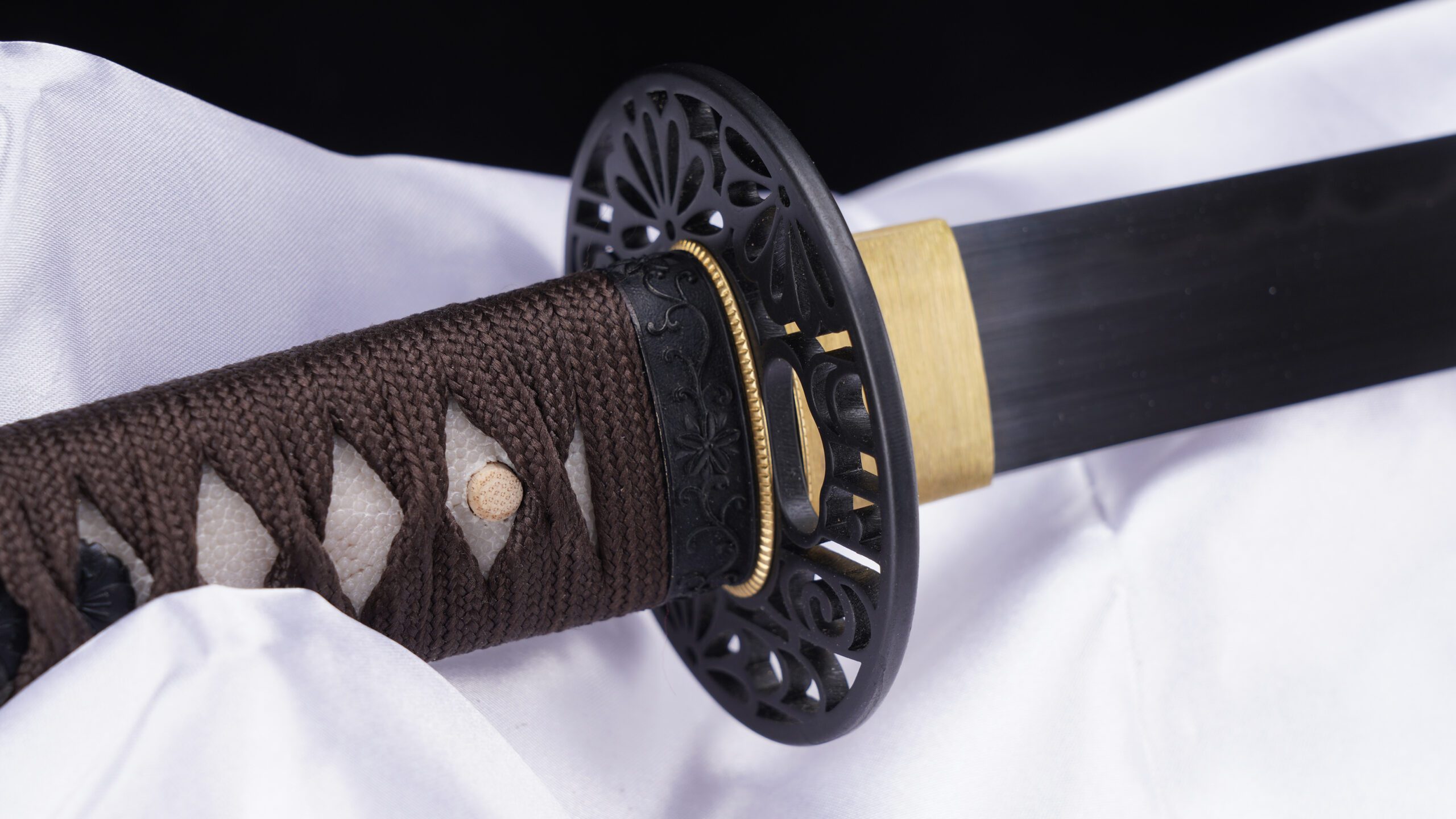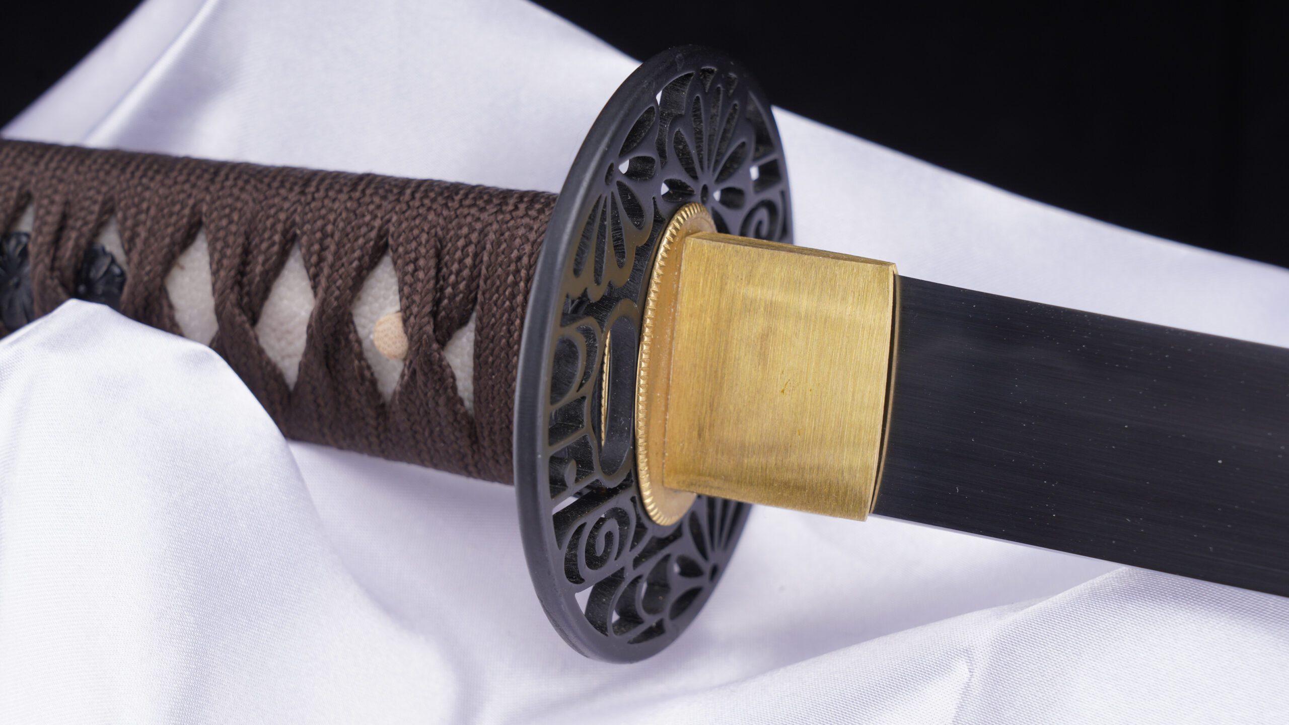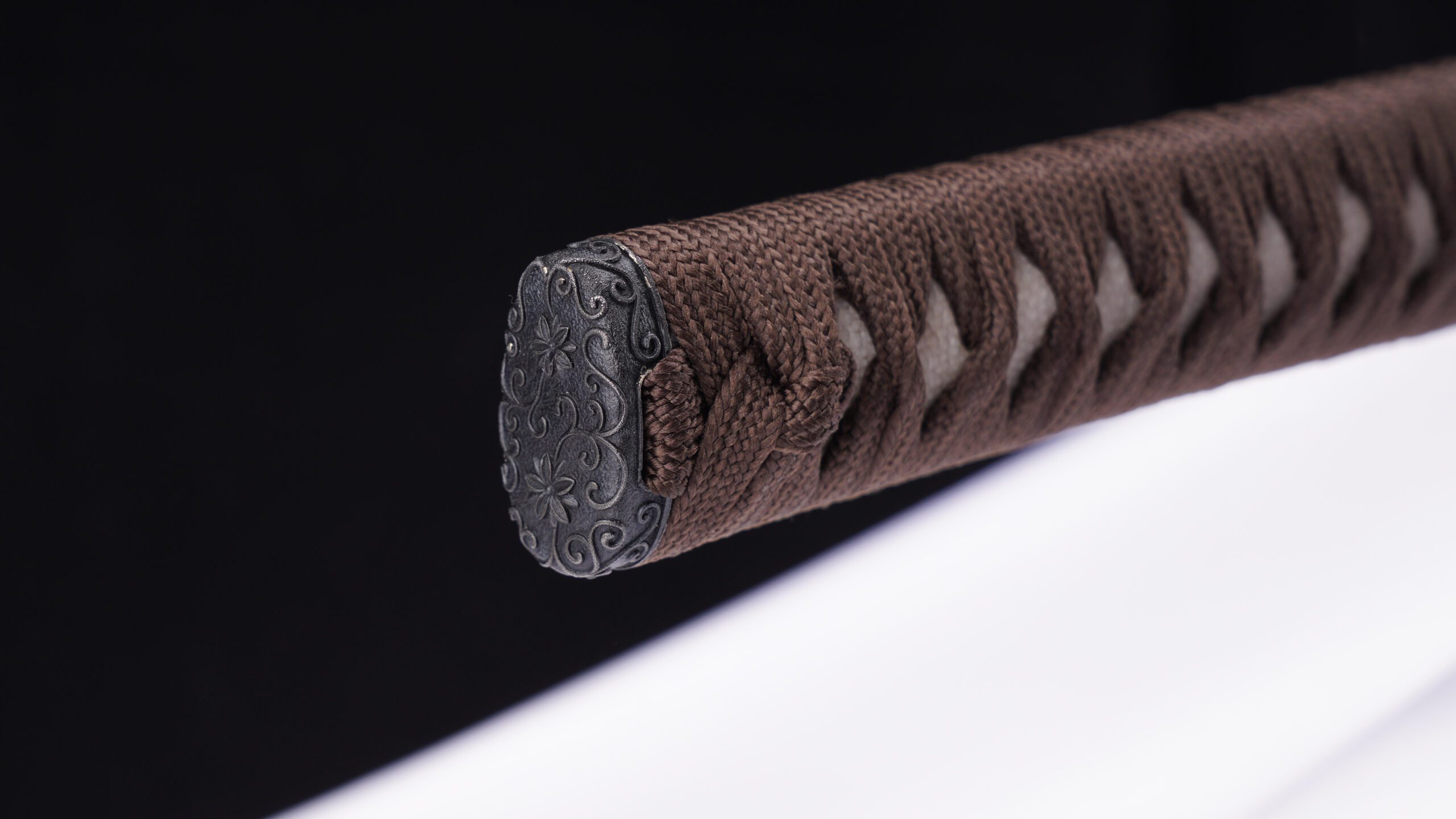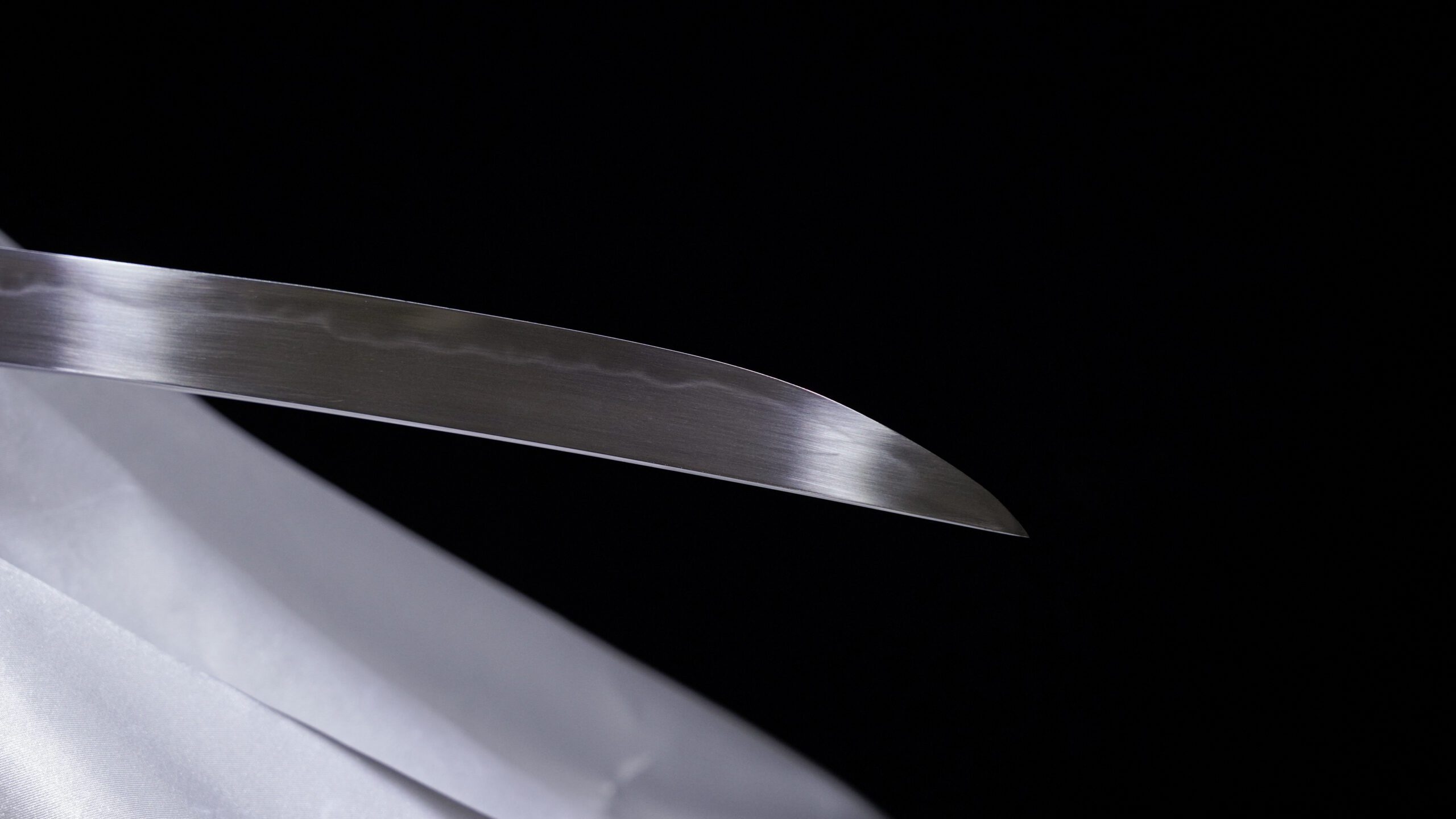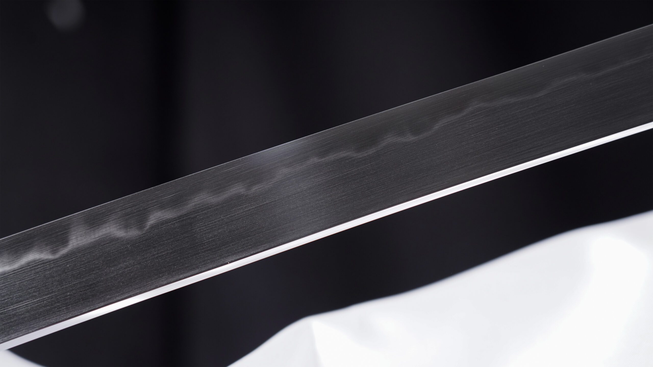 Forged from 1095 carbon steel, the hira zukuri (flat and ridgeless) blade has a sleek cutting profile prized for delivering precise, fluid strikes and a smooth draw. The blade’s differential heat treatment not only produces a hard, sharp edge, but also creates a stunning gunome (wave-like) hamon that adds a refined visual character to the blade.