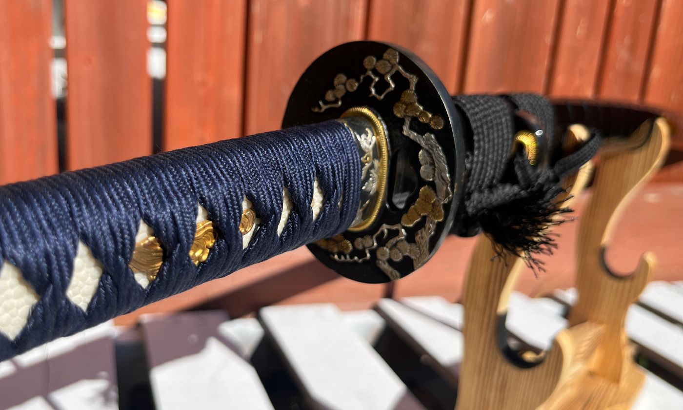 Lovely ito wrap with the samegawa. The mune of this shogu-zukuri is so thin that I am hesitant to run my finger up the back. On the whole, I am very impressed.